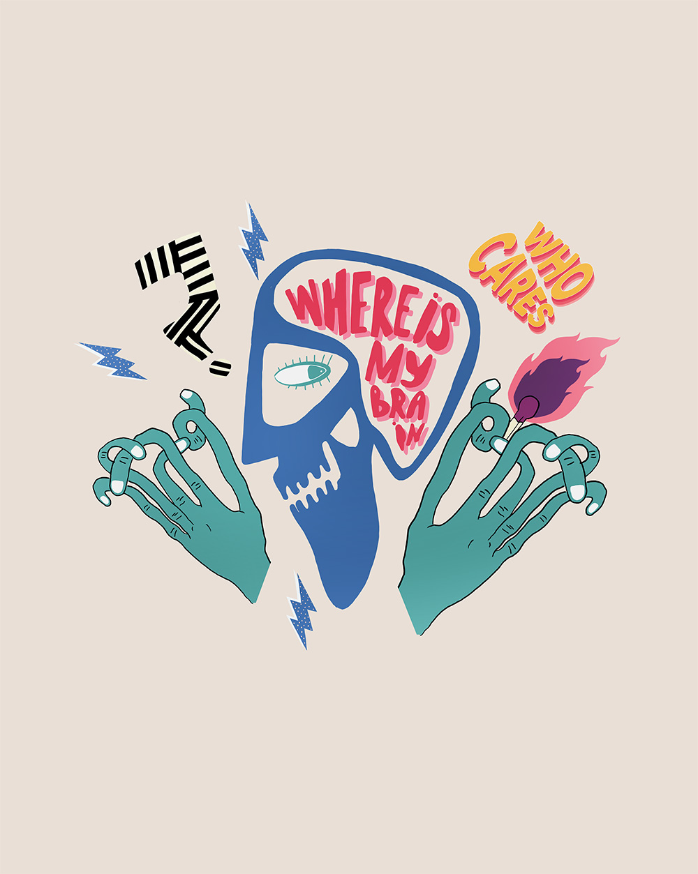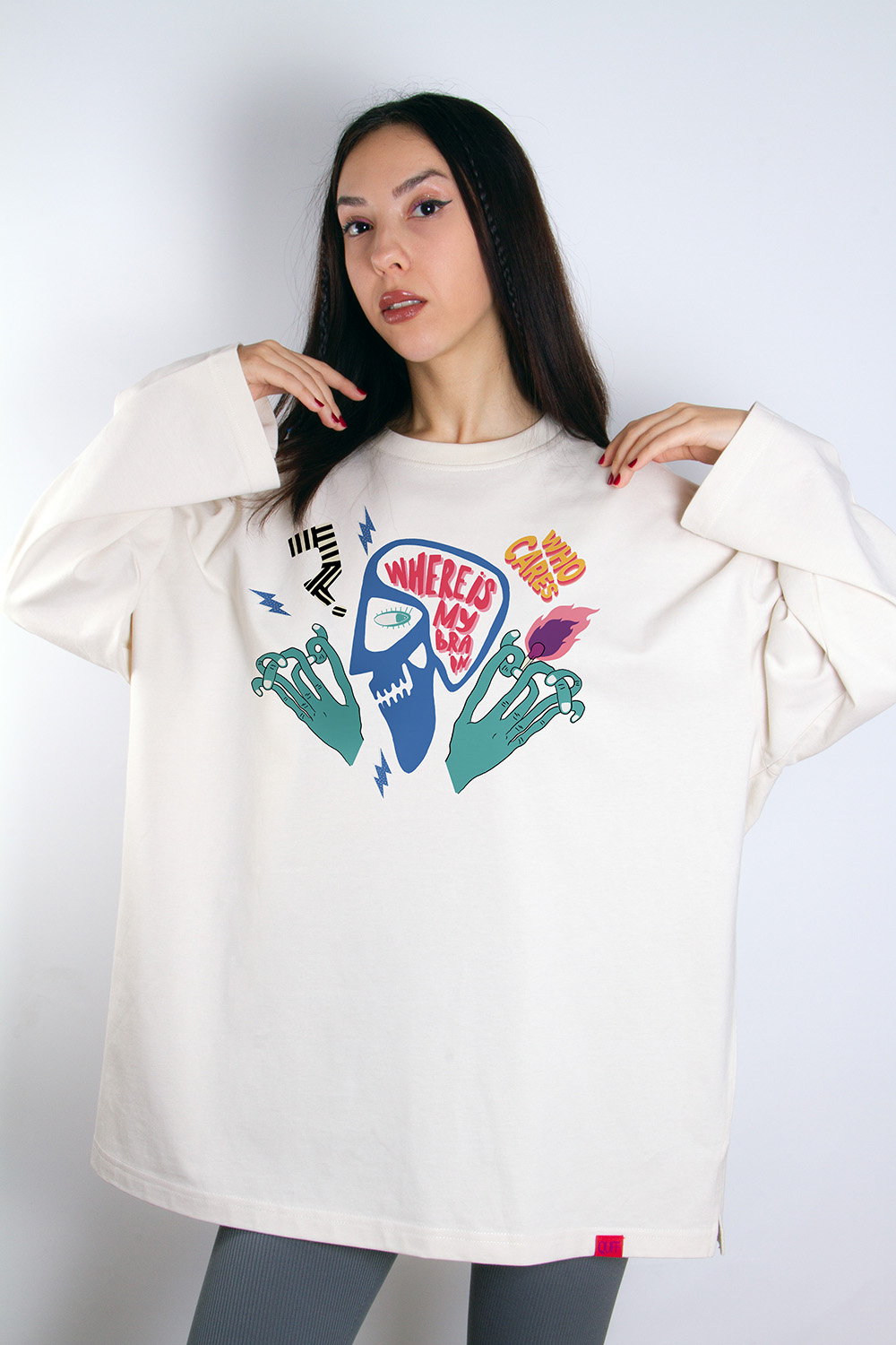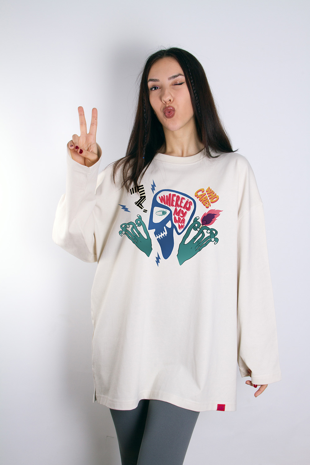 Standart Beden – Taş Rengi – %100 Cotton – Brain Tasarımlı Uzun Kollu Sweatshirt.